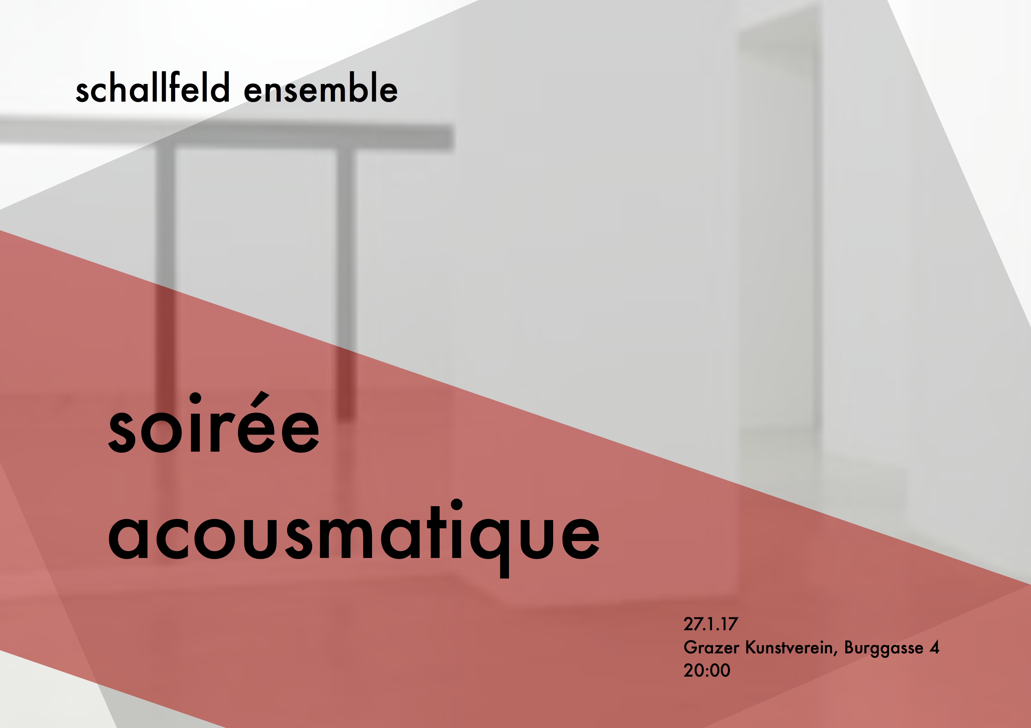 Schallfeld Ensemble Programa WOLFGANG MITTERER (*1956) Music for checking e-mails (2009) Tape/ Installation – Open end KONZERT THIERRY DE MEY (*1956) Musique de tables (1987) for three performers PETER ABLINGER (*1959) Voices and Piano. Arnold Schoenberg (1998) for piano and CD FREDERIK NEYRINCK (*1985) Transforming Construction II – (2015) for (amplified) cello solo, double bass (as the […]